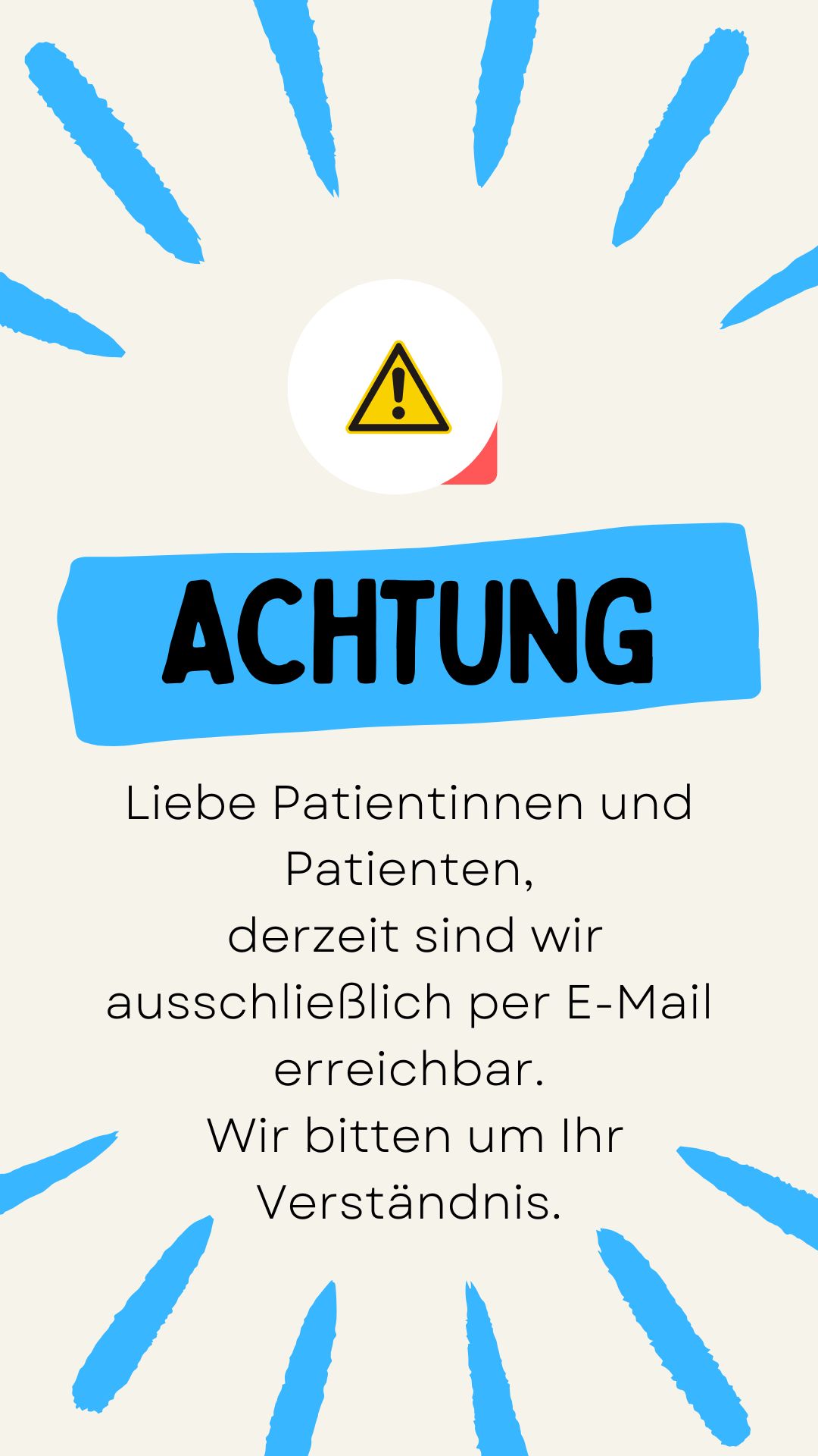 Bitte kommen Sie nur in die Praxis, wenn Sie vorher einen Termin vereinbart haben, da wir an den Samstagen nur mit „kleiner Mannschaft“ arbeiten.